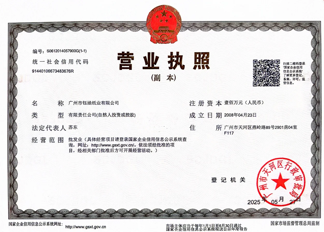 Company Name : Guangzhou Yuhan Paper Co., Ltd.